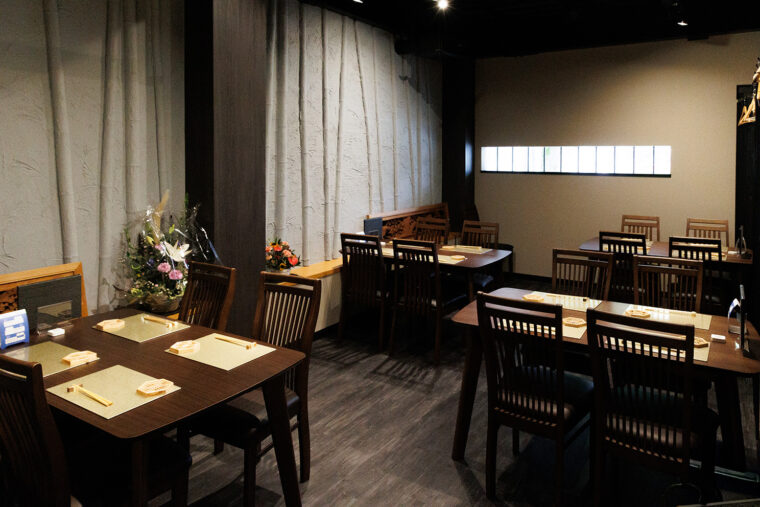 テーブル席、掘りごたつの小上がり席も用意していますが、小山さんの手さばきを間近で見られるカウンターは予約必須の人気席です。
