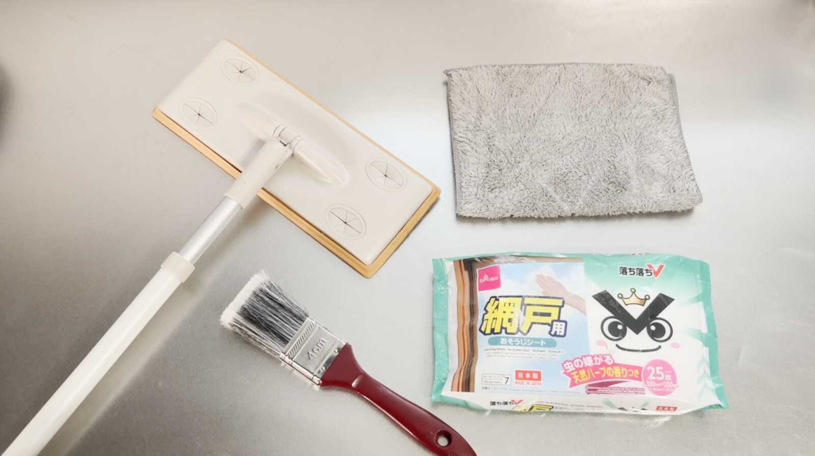 まずはペンキ用のハケなどを使い、網戸の表面についたホコリや砂を軽く払います。