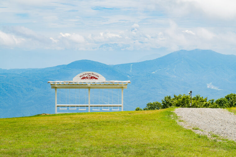 日本百名山に数えられる妙高山。その中腹にかかるゴンドラ・妙高高原スカイケーブルで高低差600メートル、全長2,600メートルの空中散歩を体験すること15分。そこに広がっているのが、今年の7月に完成した「自然と調和する文化芸術の場」をコンセプトとした複合空間、赤倉ヴィレッジスクエアです。