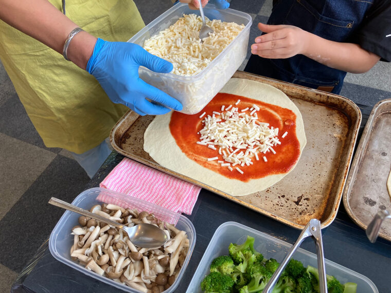 ピザ作りなどの料理教室をはじめとした体験型イベントを行なう屋内キッチンスペース。イベントのない日はトイレ以外立ち入りができないようになっているためご注意を。