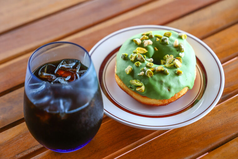 開放的な水盤テラスや大きな窓に広がる雄大な眺望を背景に、妙高山から湧く赤倉清水の水を使った水出しコーヒーや、赤倉観光ホテルのパティシエ監修のドーナツを味わえます。