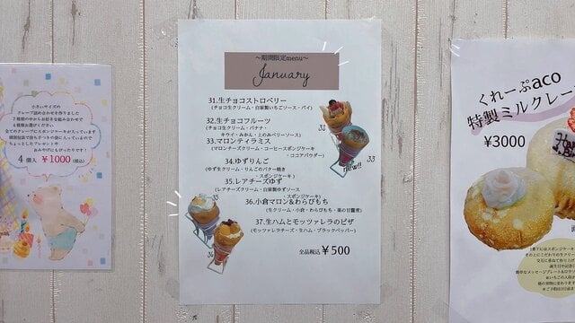 お店こだわりのクレープは、全てワンコインで食べることができます!
