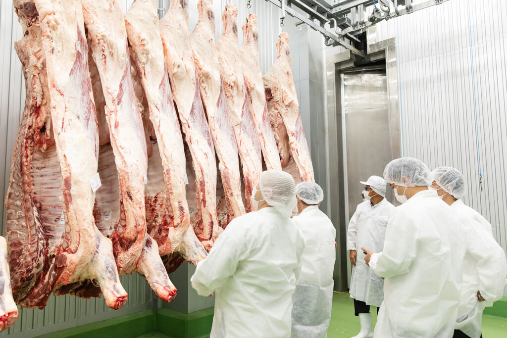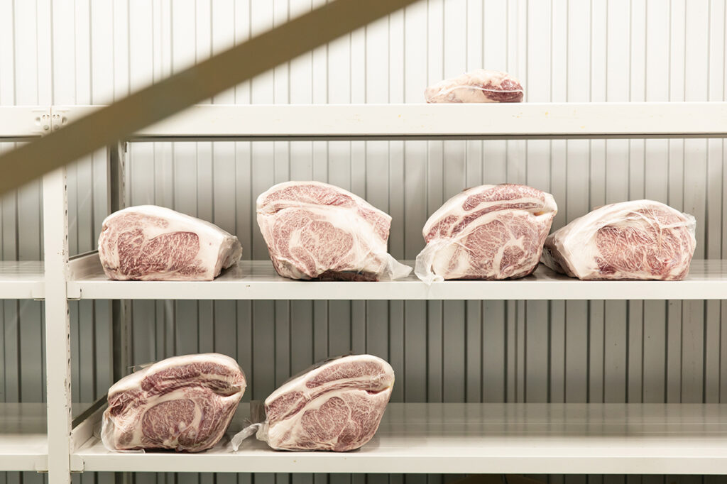 温度・湿度管理が徹底した作業室。自社で枝肉から加工を行う。
