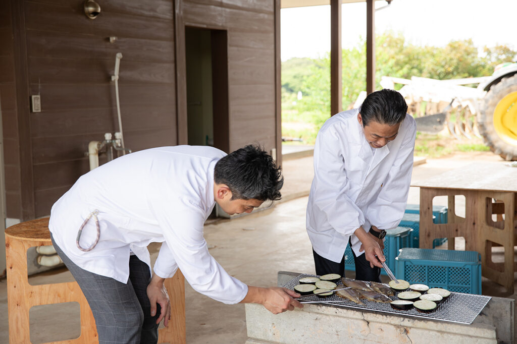 農場内のキッチンで料理人のみなさんが調理。
