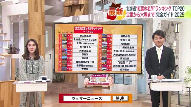 道内63ヶ所の紅葉スポットが、アクセス数をもとにランキング化されています。