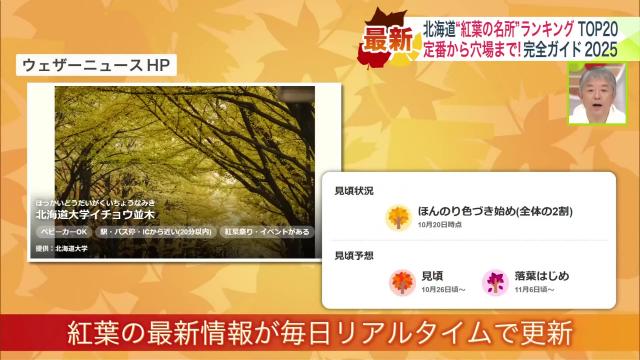今回のランキングで使用したのは、紅葉の最新情報が毎日リアルタイムで更新される「ウェザーニュース」。
