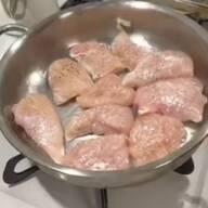 (1)フライパンに油(材料外)をしき、ベーコン、グリーンアスパラガス、とうもろこしを焼く。