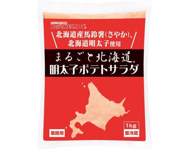 同じく『まるごと北海道』シリーズの『まるごと北海道 明太子ポテトサラダ』(1kg 1,236円)は、人気の高い北海道産明太子を使用し、ポテトにまろやかな辛味が程良いアクセントをプラスしてくれます。