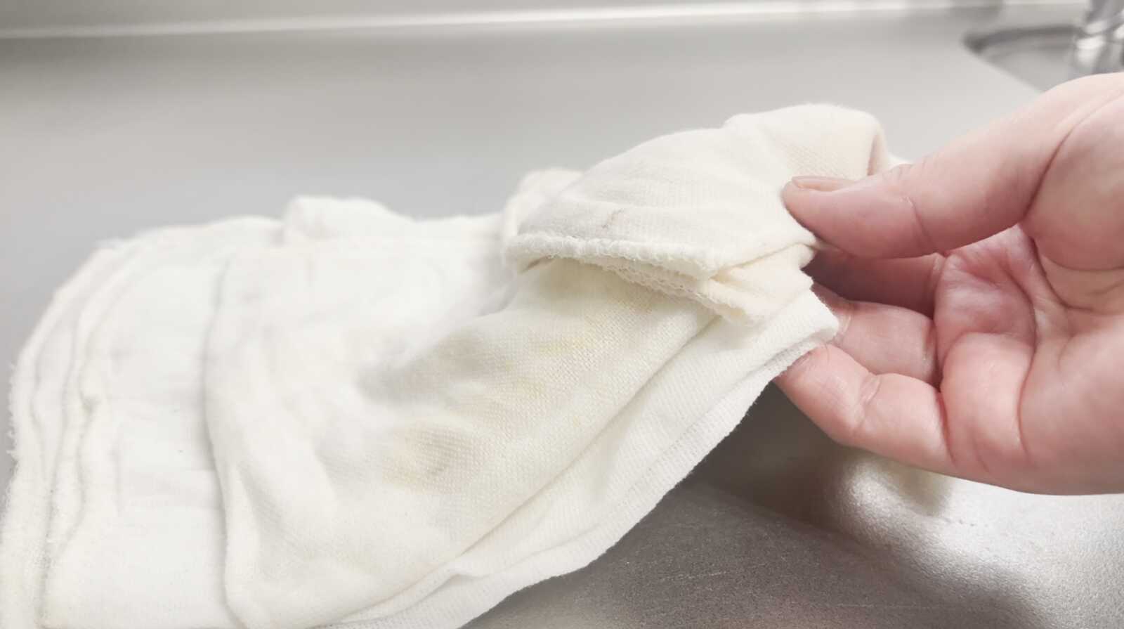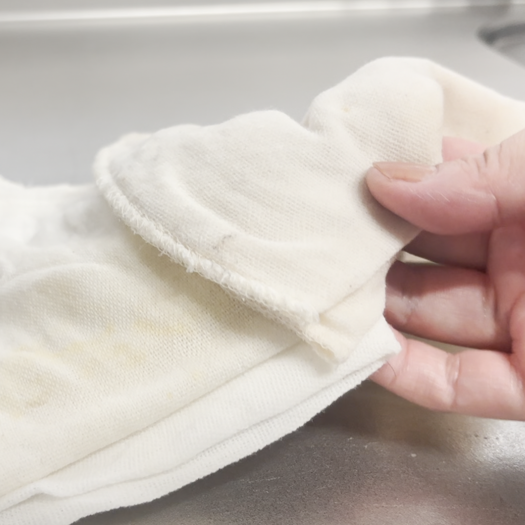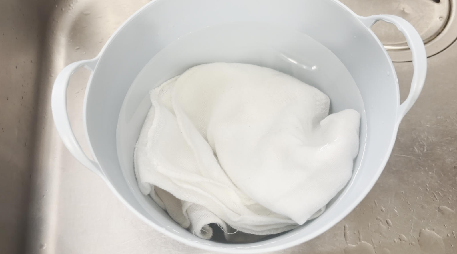 手順⒉ 白い綿布巾を約2分つけ置きする