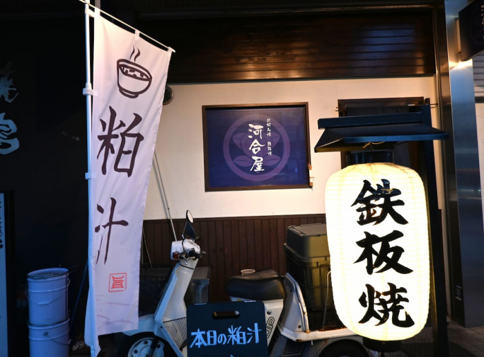 JR新長田駅から北へ徒歩5分程の場所に、「粕汁」の暖簾を発見。鉄板焼き屋さんなのに、粕汁が有名な『お好み焼 鉄板焼 河合屋』(神戸市長田区)へ行ってきました。