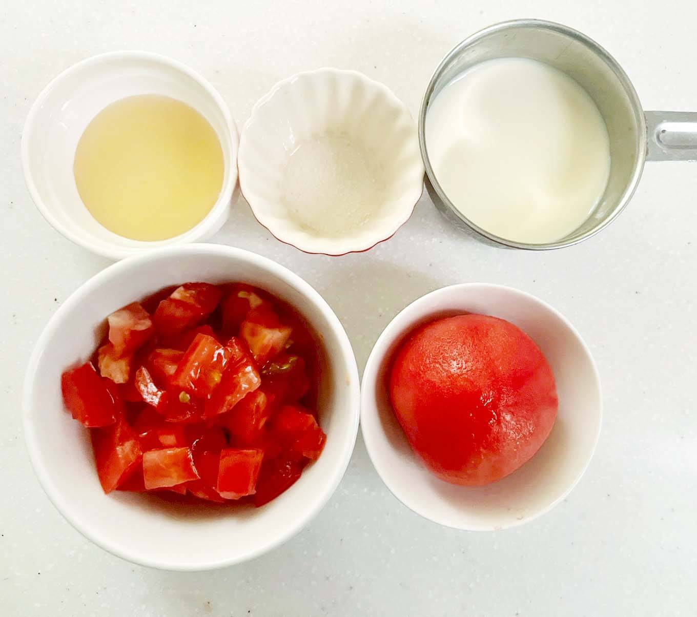 ・生のトマト0.5個分は角切りにします