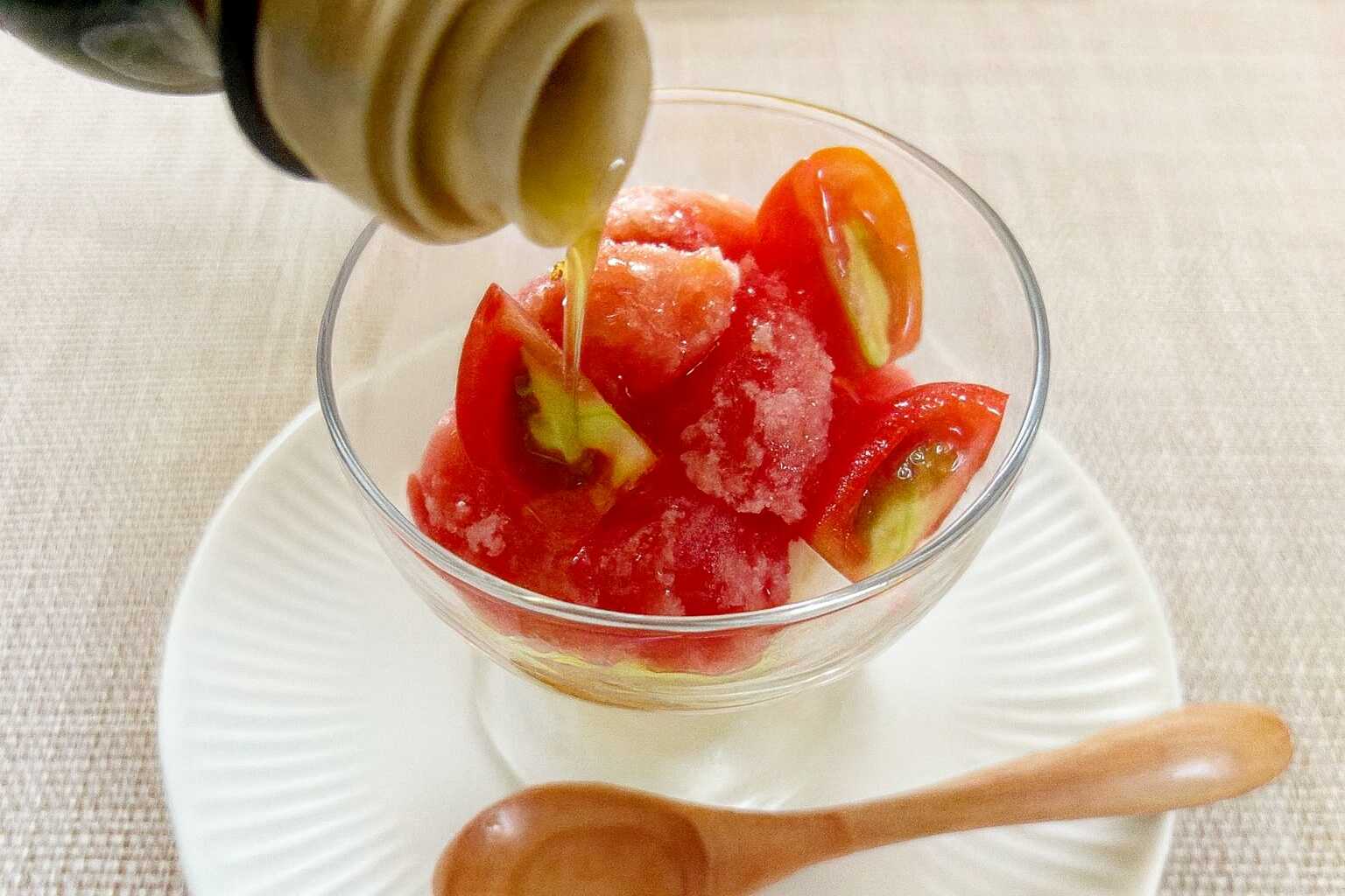 冷凍トマトをすりおろす際は手が冷たくなるので、調理用の手袋などを使用してください