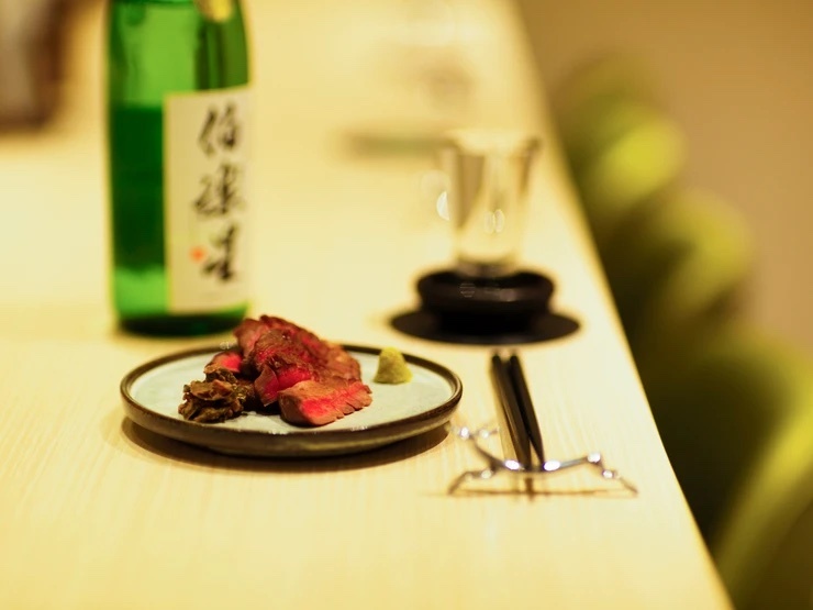 季節感あふれる和食をベースに、和のだしとは味わいの異なる『濃厚甘海老のスープ』や色鮮やかな盛付けなど、洋食のエッセンスが感じられる料理の数々。季節ごとに取り揃えが変わる10~15種類の日本酒を始め、種類豊富なワインなど、お酒にも「和」と「洋」がちりばめられています。