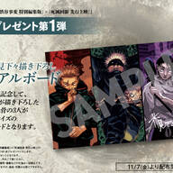 『劇場版 呪術廻戦「渋谷事変 特別編集版」×「死滅回游 先行上映」』にて、入場者プレゼント第1弾~第4弾まで配布されることが発表された。第1弾では、原作者・芥見下々が描きおろした虎杖、五条、乙骨の3人が描かれたA5サイズのビジュアルボードを、11月7日(金)より配布する。