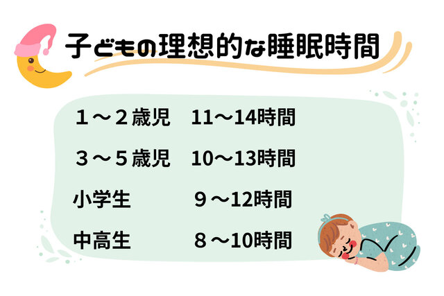 厚生労働省の指針によると、子どもの理想的な睡眠時間は次のように推奨されています。