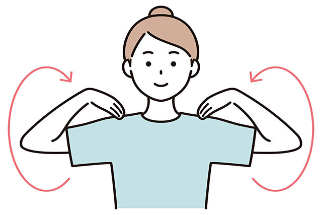 ④ 呼吸を止めずに、前から後ろに5回、肘を大きく回す。