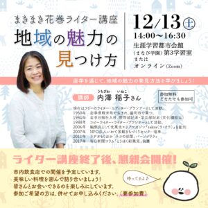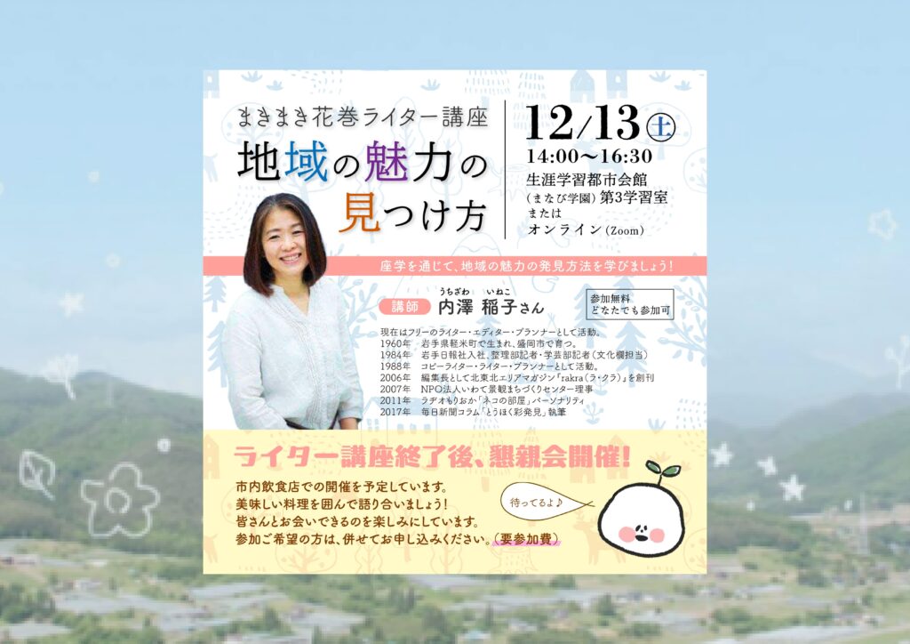 The post【12/13開催 ライター講座】プロのライターから学ぶ!地域の魅力の見つけ方💫first appeared onまきまき花巻.