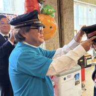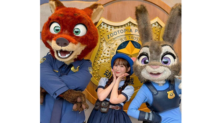篠崎愛は万博キャラクターのぬいぐるみを頭に乗せた
