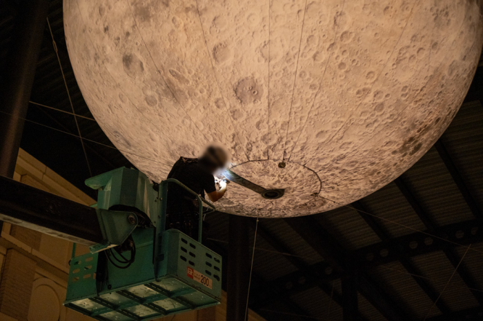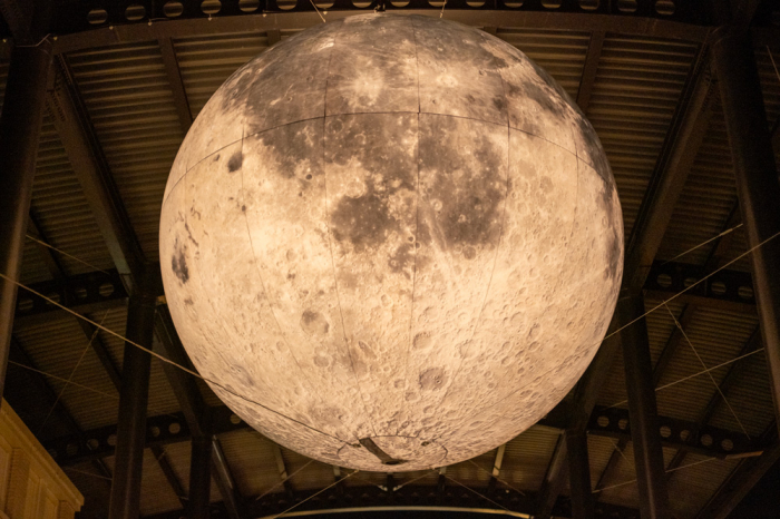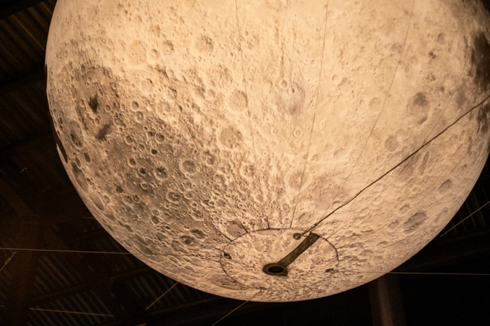 近づいてみると、その存在感に圧倒されます…!クレーターの質感や陰影が非常に精巧で、“本物の月”が目の前に現れたような錯覚さえ覚えます。