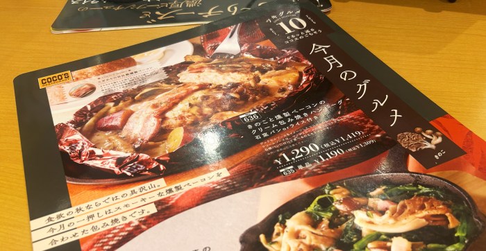 みなさーん! ココスの今月のグルメ(2025年10月)『きのこと燻製ベーコンのクリーム包み焼きハンバーグ』は、もう食べましたか?