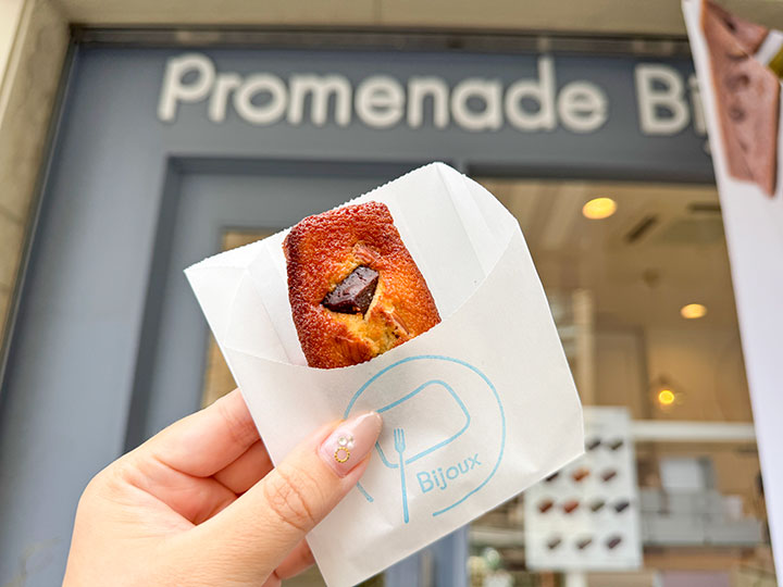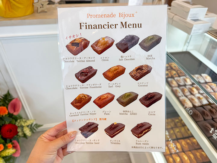 約2週間の休業を経て、2025年8月30日にリニューアルオープンした「Promenade Bijoux +」。お店は淡いブルーの外観が印象的で、まるで海外の街角に佇むおしゃれなお店のよう……!新しく焼きたてフィナンシェが仲間入りしたことに加え、“お店も、来てくださるお客様もいい方向に動く”と言う意味を込めて、新たに店名に“+”がつきました。