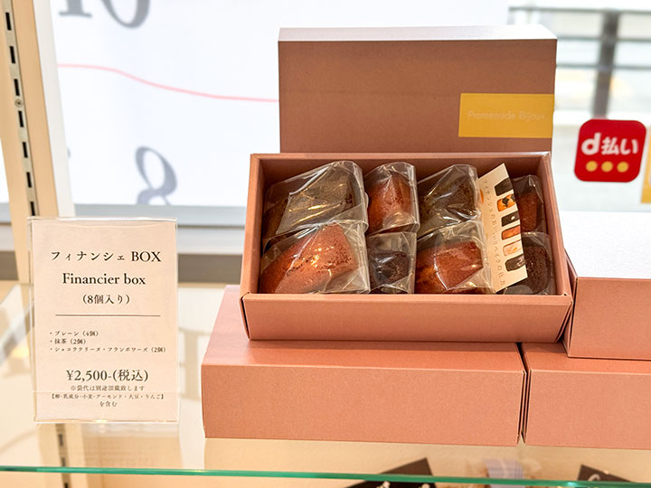 2週間ほど日もちする個包装の箱入りフィナンシェも販売されているので、贈り物としてもおすすめですよ。