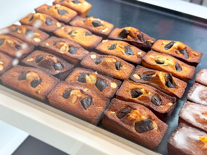 リニューアル最大の注目は、店内右手に新しく導入されたフィナンシェ専用ショーケース。以前はイートインスペースが設けられていた場所に、毎日焼きたてのフィナンシェが数種類並びます。