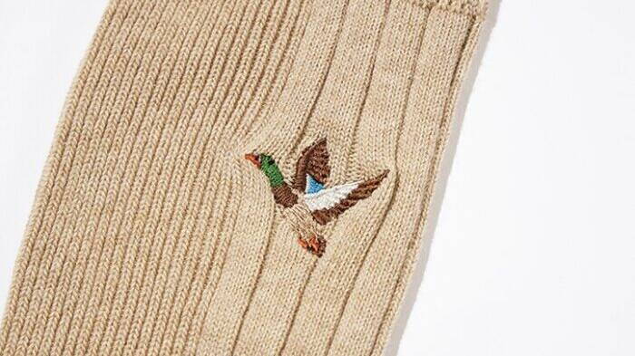 定番のダブルフェイスクルーソックスは、登山用ソックスから着想を得たもので、スウェットのような肉厚な生地が魅力。
