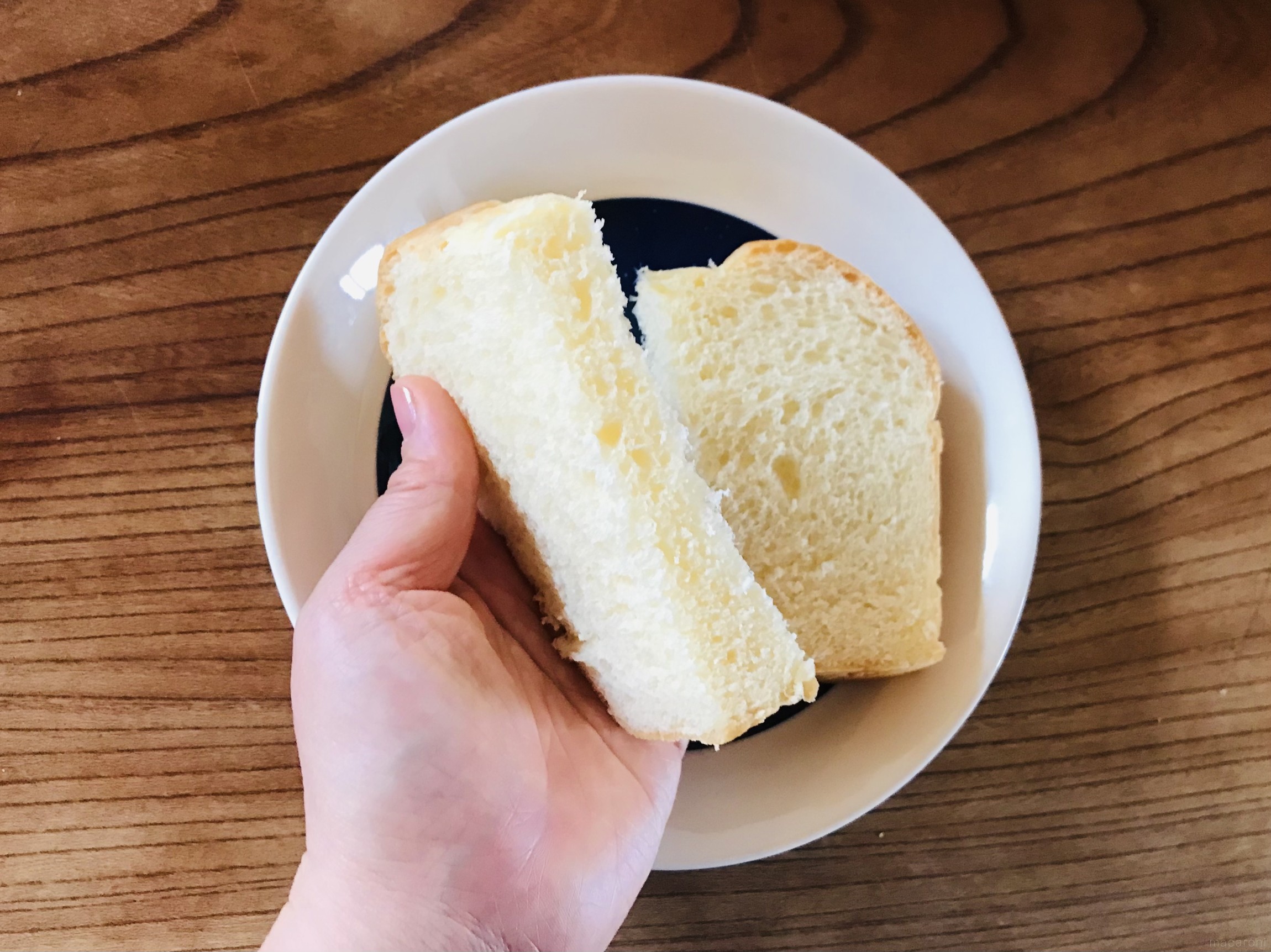 ボロボロにならないよう、よく切れるナイフを使ってゆっくりとカットするといいでしょう。やわらかすぎて薄切りにするのがむずかしいため、食パンでいうところの6枚~4枚切りの厚さを目指すのがよさそうです。