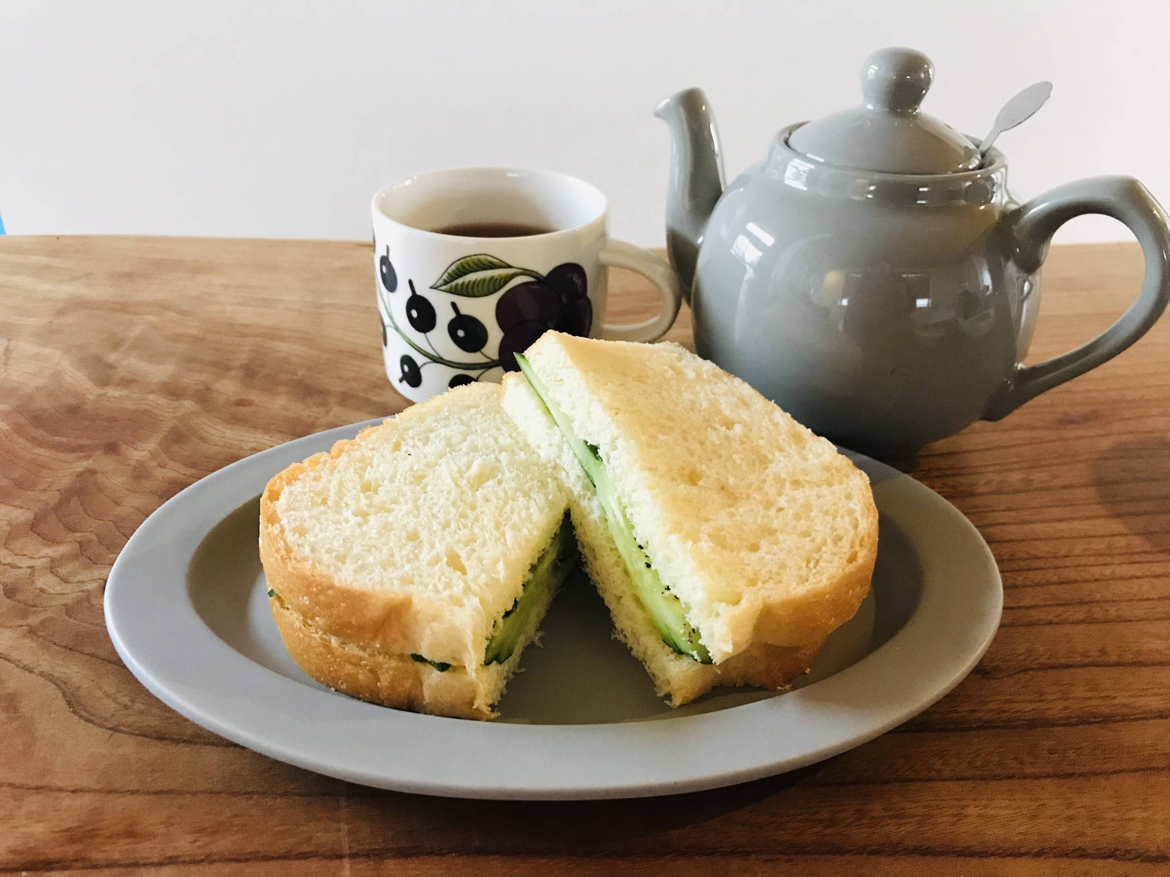 イギリスのアフタヌーンティで食べられるキューカンバ―サンドです。リッチな味わいのパンが爽やかなきゅうりの味を引き立てます。