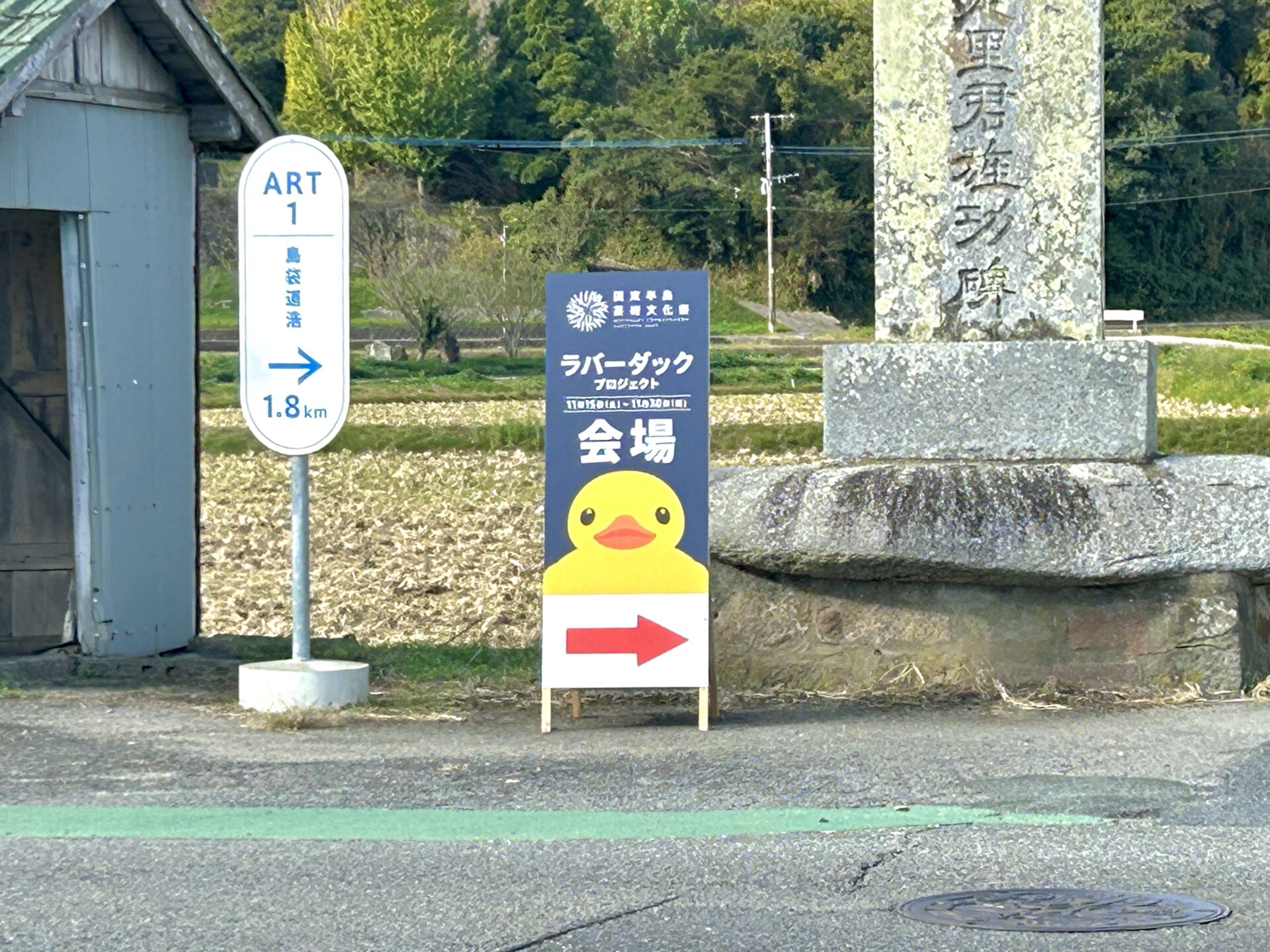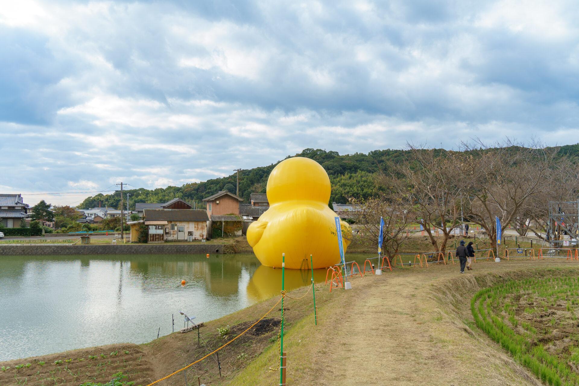 【ラバーダックプロジェクト】国東市の田園風景の中に現れた巨大なアヒル