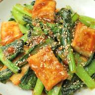 にんにくの風味がガツンときいた甘辛煮です。面積の広いフライパンなら、小松菜1ワもラクに煮上がります。