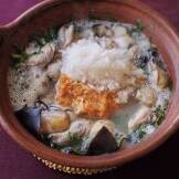 3. 【2】に【B】を加えて混ぜ、強めの中火で煮立たせる。にんにく、小松菜の軸を加え、軸が透き通ってくるまでサッと煮る。小松菜の葉を加え、上下を返しながら3分間ほど煮る。ごま油少々を回しかける。