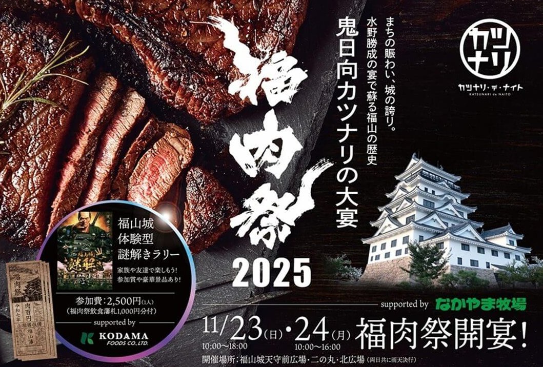 2025年11月23日(日・祝)、24日(月・振休)の2日間、広島県福山市の福山城天守前広場・二の丸・北広場を会場に、「福肉祭2025」が開催されます。
