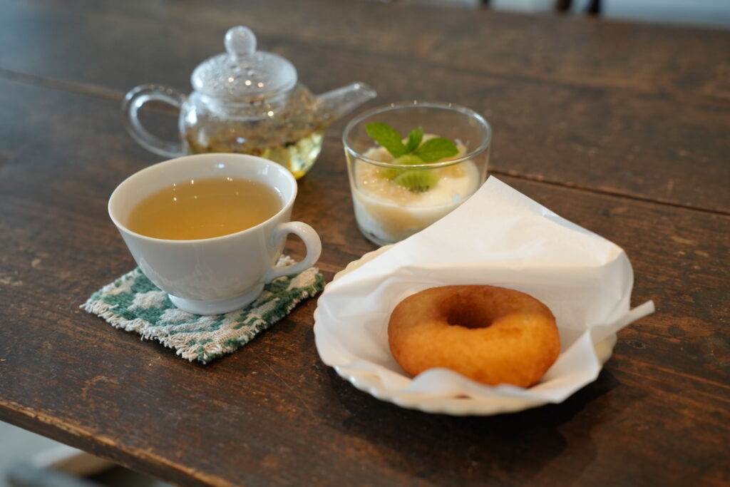 メニューは「豆乳おからドーナツ」と「甘麹ヨーグルト」、そしてドリンクのセット。