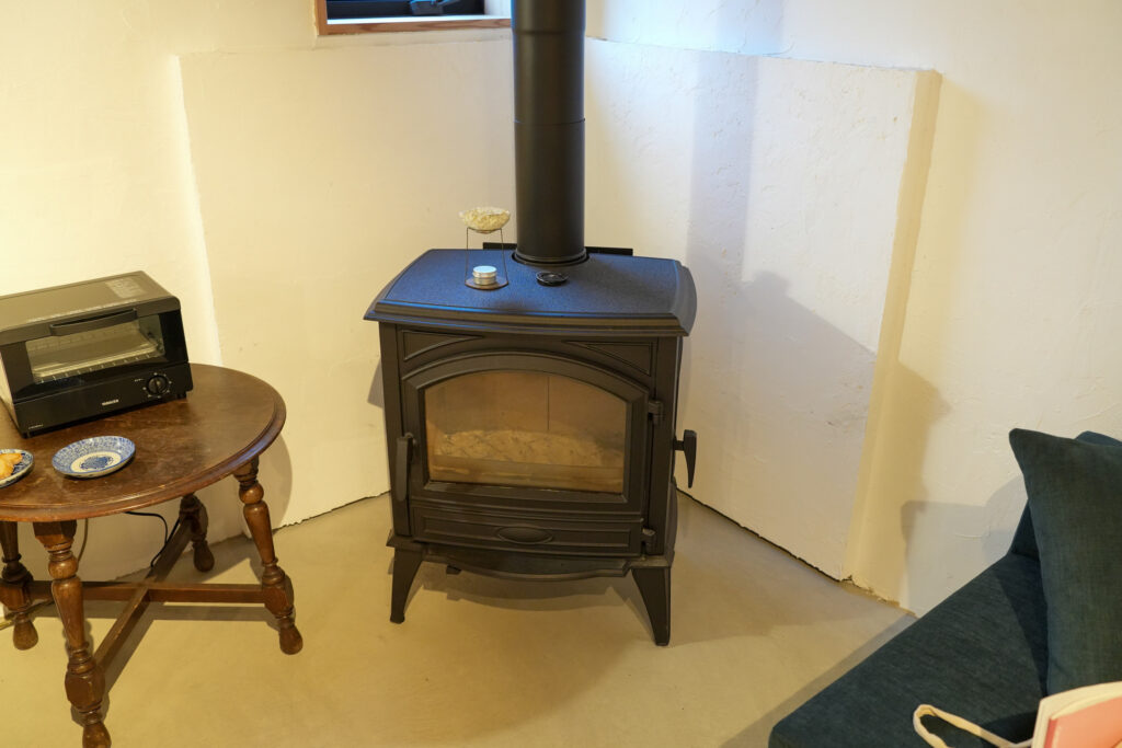冬には薪ストーブの炎を眺めながら、贅沢なひとときを過ごすこともできますよ。