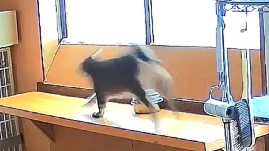 ペットゲートの奥で待機する一匹の猫ちゃん。直後に発された鳴き声は“歓声”か、はたまた“抗議”か──。