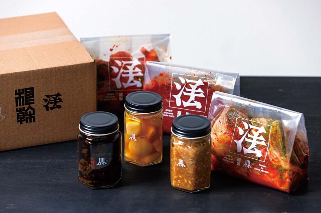 祖母から受け継いだレシピをもとに、さまざまな工程を経て漬けるキムチは、辛さの後に果物の自然な甘さが広がるのが特徴。定番のシマキム白菜(500g1,880円)や自家製ヤンニョム(300g1,580円)などを販売します。