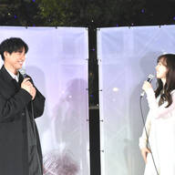 なんば広場(大阪市中央区)で11月23日、映画「楓」のライトアップサプライズイベントが開かれ、主演の福士蒼汰さん、福原遥さん、行定勲監督が登場した。