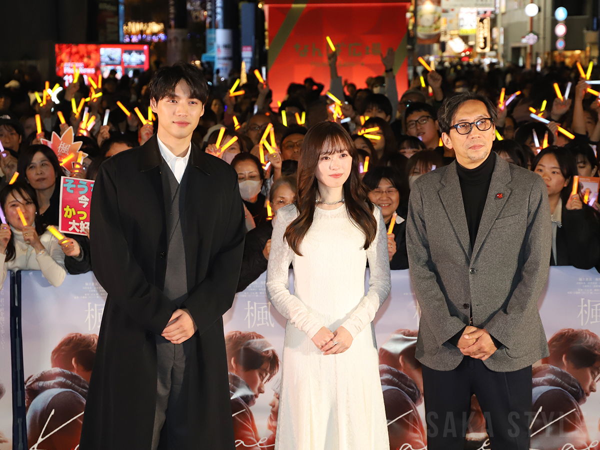 会場には、数時間前の発表にもかかわらず約1000人の観覧客が集まった。登場した3人は、12月19日に公開を控える同作について撮影エピソードや作品の魅力を語ったほか、同日始まったイルミネーション「Bright You Namba 2025」(11月23日~12月25日)の点灯式にも参加し、会場を盛り上げた。