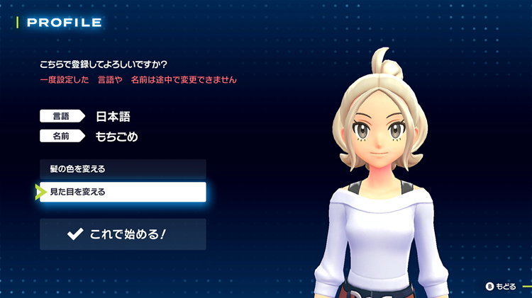 ゲーム開始時に選択できる主人公の性別は変更できません。