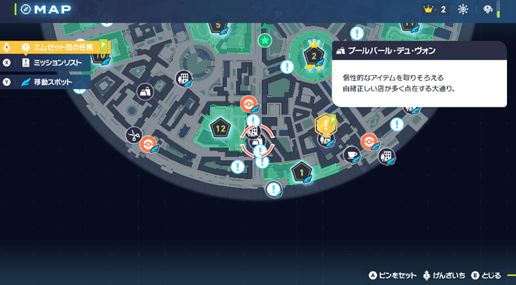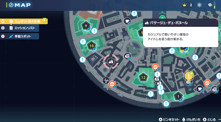 各ブティックによって購入できるアイテムの特色も異なるので、マップで確認してから訪れましょう。