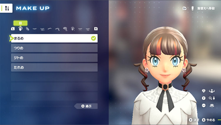 メインメニューの着せ替え画面ではメイクを行うことができます。
