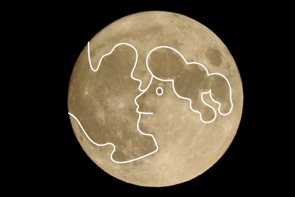 「晴れの海」と「静かの海」が女性の髪の毛、明るい部分が顔を表します。東ヨーロッパや北アメリカで見立てられています。