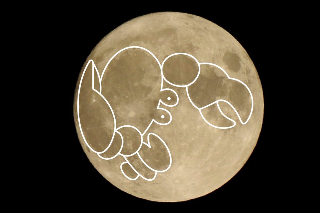 「晴れの海」と「静かの海」がカニの振り上げたハサミに見えます。南ヨーロッパで見立てられています。