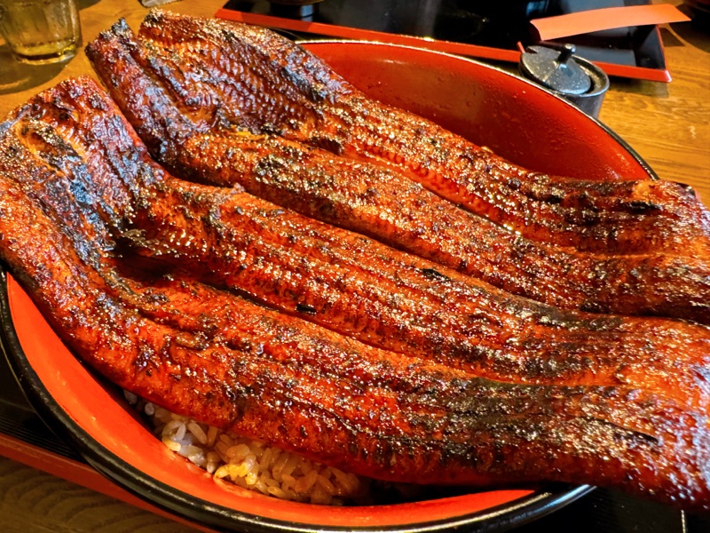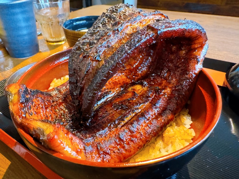 店内の一番大きな丼ぶりには3kgのお米とかば焼2尾・白焼き2尾が乗っています。大食いユーチューバーの方はお米6kgです。