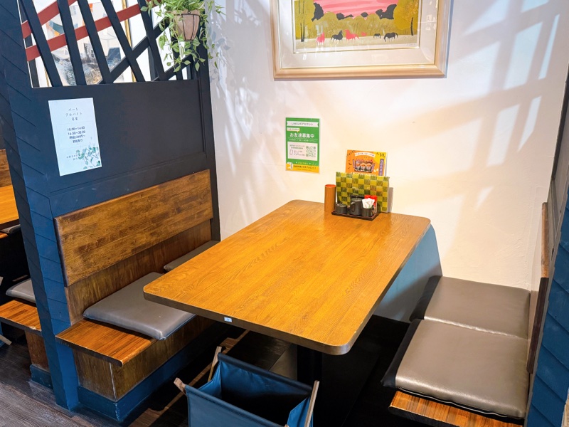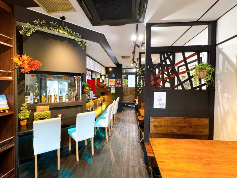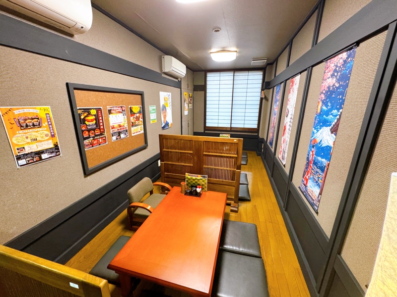 カウンター6席、4人掛けテーブル席が3つ、6人掛けテーブル1つ、奥の座敷には4人掛け座卓席が3つと、かなり広々した店内です。