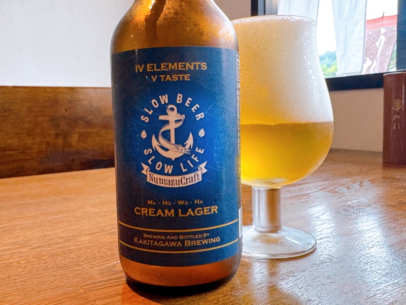 沼津クラフトビールが4種類ほどあったので、柿田川の湧水をイメージした「クリームラガー」をチョイスしました。うなぎとキレのあるビールがベストマッチでした。