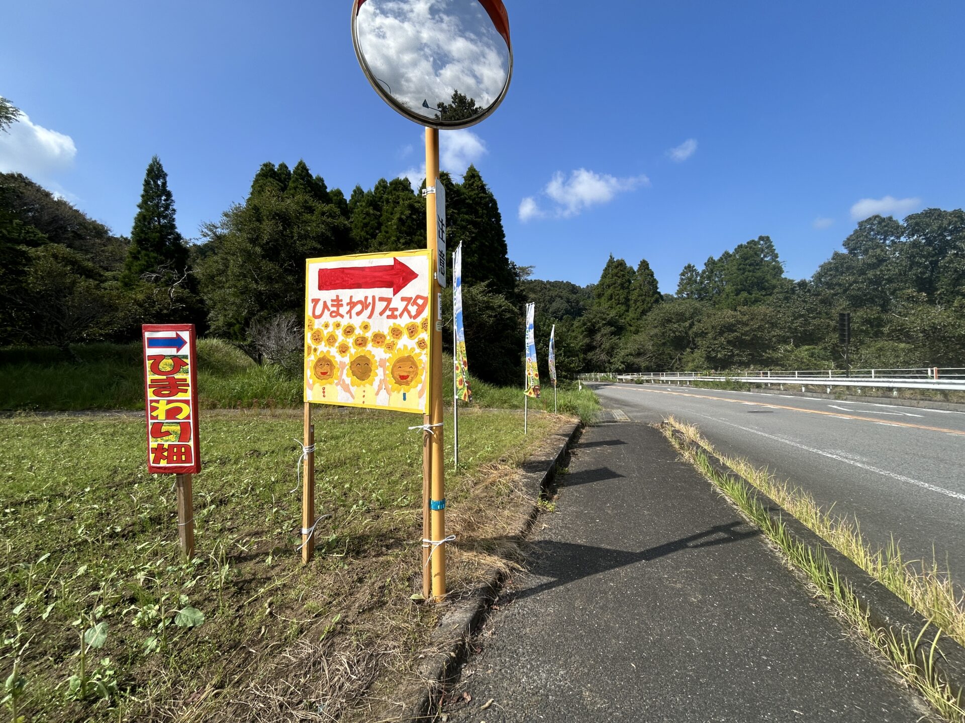 大分市中心部から車で1時間ほど、野津町の中心部からさらに佐伯方面へと進むと、「ひまわり」の看板や旗が立っていますので案内に従って集落へと入っていきます。