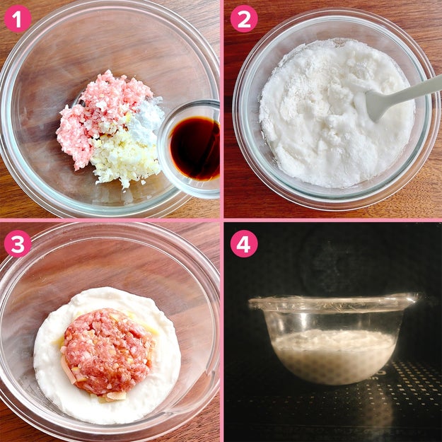 ④ ③にラップをかけ、600Wの電子レンジで1個ずつ3分加熱したら、完成!